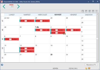 Le gestioni delle aree dei trasporti quali assegnazioni di viaggio, degli eventi e delle attività aziendali, permettono la rilevazione delle disponibilità ed indisponibilità di autisti e mezzi nelle date in cui questi vengono assegnati. Attraverso lo scadenzario dell'anagrafica ed il calendario delle disponibilità, l'operatore può interrogare ed eventualmente stamparne l'elenco.