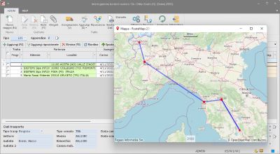 Gestisce l’assegnazione delle tratte ad autisti e mezzi propri o vettori esterni, con vettore e condizioni commerciali per tratta ed eventuale movimentazione di bancali. Il riepilogo del viaggio e delle tratte in esso contenute, può essere stampato ed inviato via email ai clienti e ad eventuali vettori.